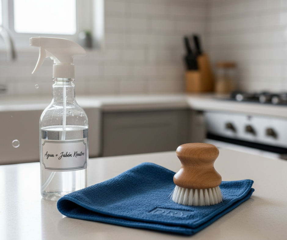 - Botella de spray con agua y un chorrito de jabón neutro.